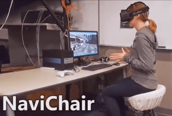 Kitson, A., Riecke, B. E., Hashemian, A. M., & Neustaedter, C. (2015). NaviChair: Evaluating an Embodied Interface Using a Pointing Task to Navigate Virtual Reality. In Proceedings of the 3rd ACM Symposium on Spatial User Interaction (pp. 123–126). Los Angeles, CA, USA: ACM. https://doi.org/10.1145/2788940.2788956 (Download)